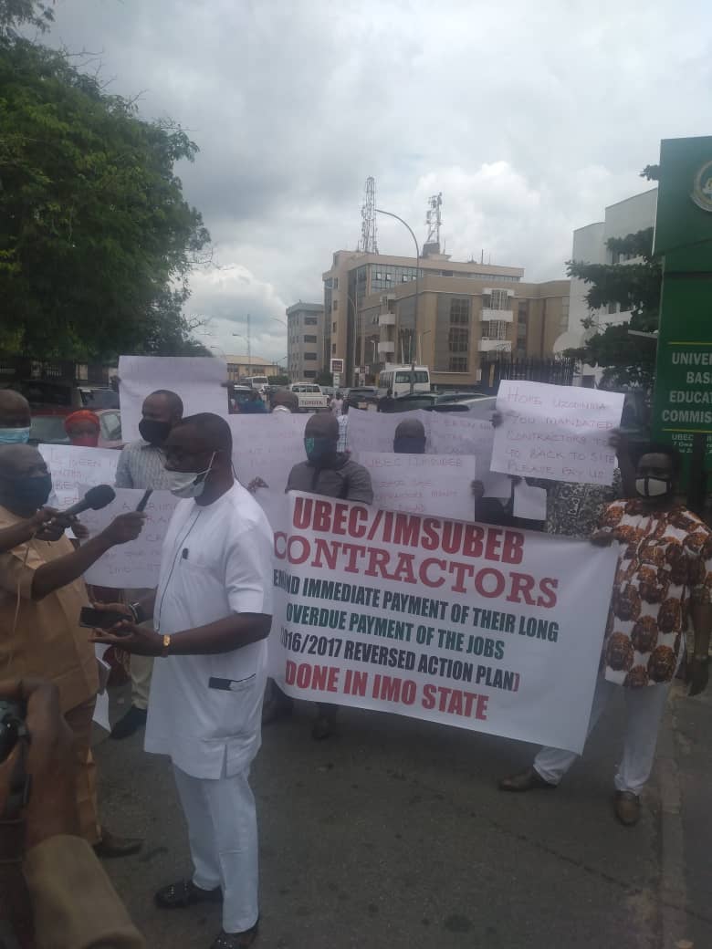 Addressing newsmen in Abuja, the Chairman of the contractors, Honourable Williams Ejiakor, said that the contractors protested in front of UBEC, because the commission is a major stakeholder and having supervised and released its own counterpart funds, the commission should prevail on the Imo State Government to pay them.
