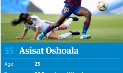 Asisat Oshoala has been ranked as number 55 on the Guardian’s list of 100 best female footballers of 2019. She and Malawian scoring sensation, Tabitha Chawinga...