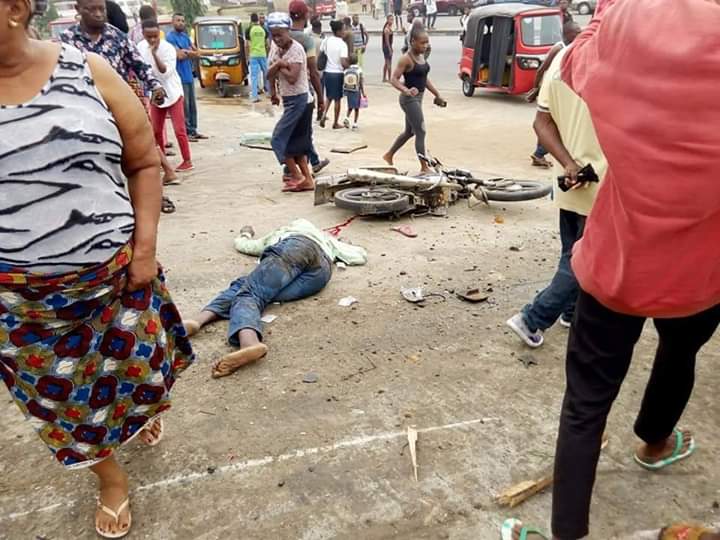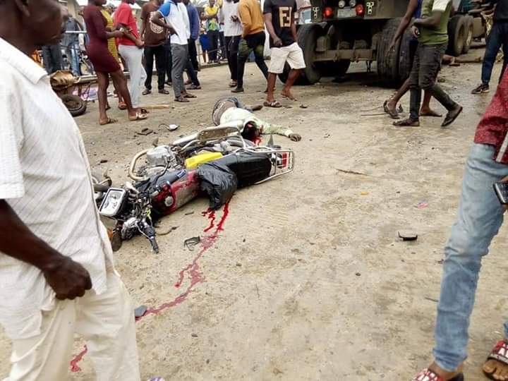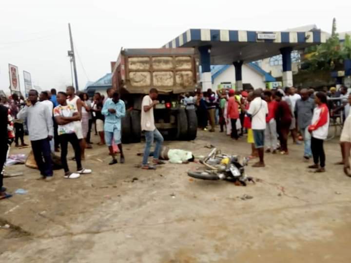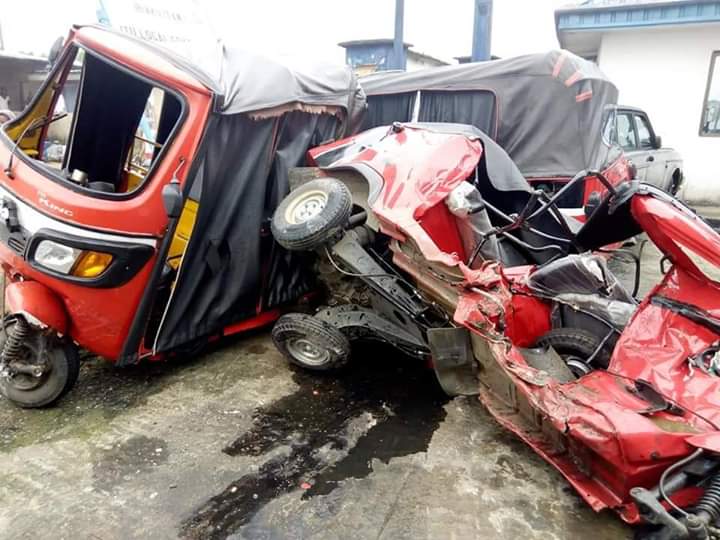 An eye witness who pleaded anonymity said the truck driver was trying to avoid a commercial tricycle (Keke) rider who recklessly crossed the road”.